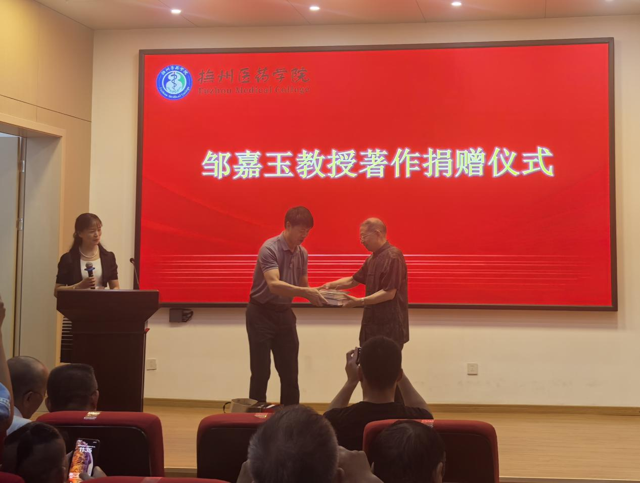 近日,江西中医药大学一行到访抚州医药学院开展指导交流,该校知名中医专家邹嘉玉教授现场捐赠《邹嘉玉临证精要》《妙方百解》《术后诸证辨治》三本著作共28册,并受聘为抚州医药学院客座教授,以“高校 + 专家”模式为中医药人才培养与校际文化交流注入新动能。